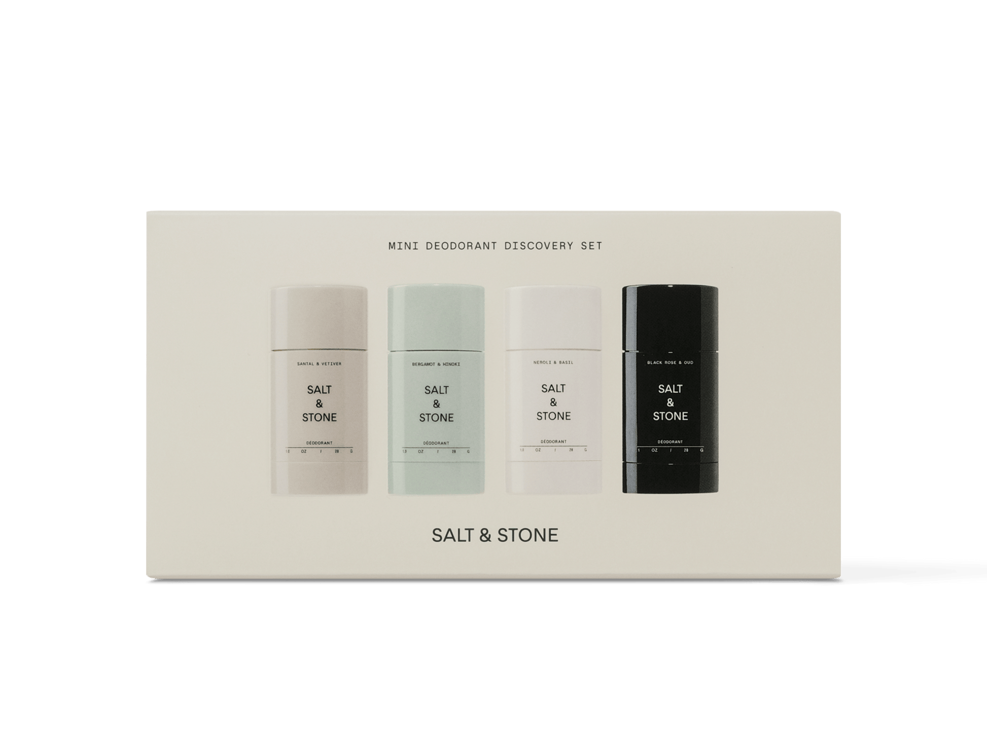 De perfecte set voor iedereen die op zoek is naar een natuurlijke deodorant die écht werkt. Ontdek je favoriet met deze collectie van mini-deodorants in de populairste geuren van Salt & Stone: Bergamot & Hinoki, Santal & Vetiver, Black Rose & Oud, Neroli & Basil.